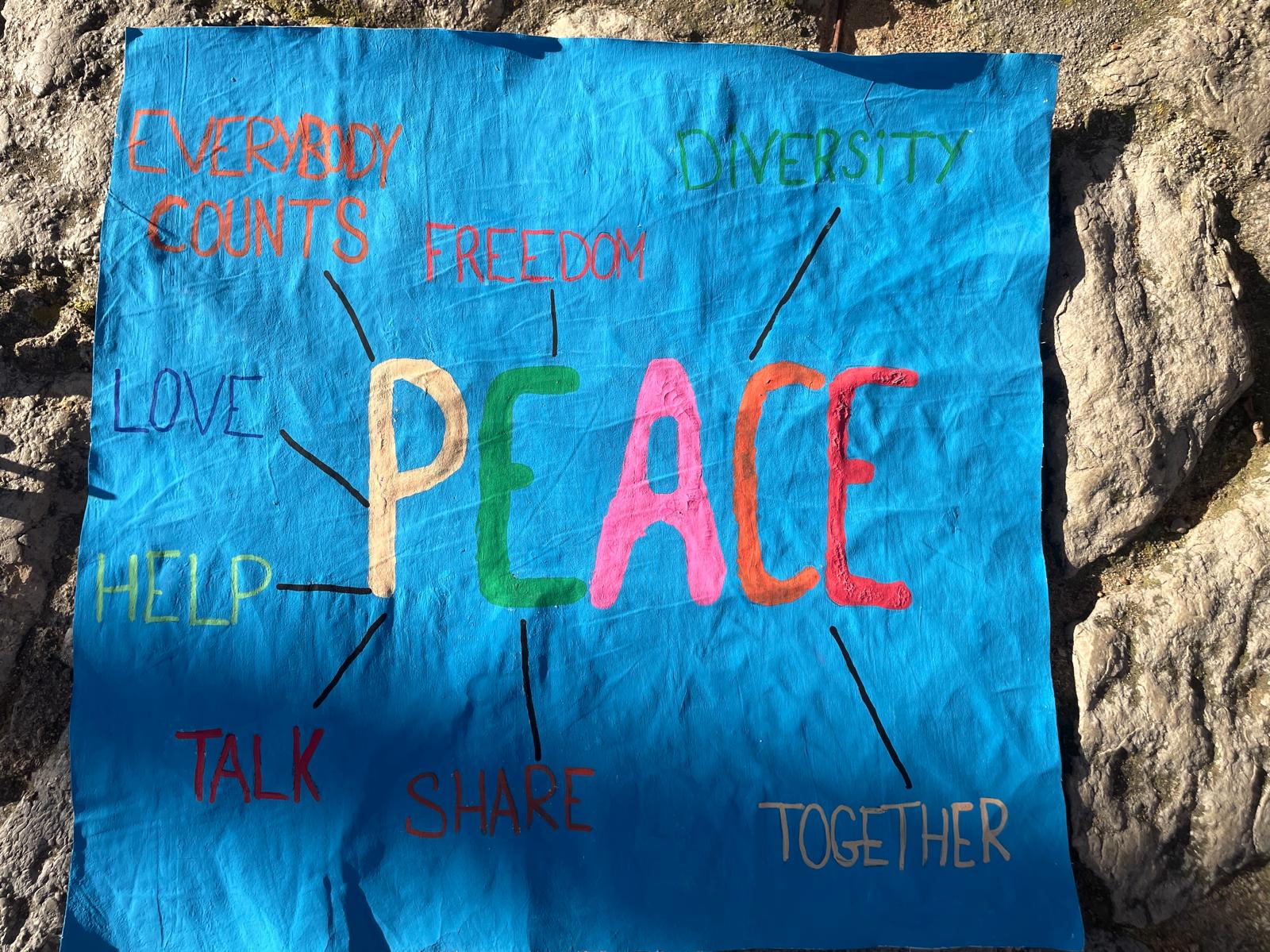 Per classes han compartit el seu missatge del dia de les BANDERES PER LA PAU elaborades per l’alumnat.