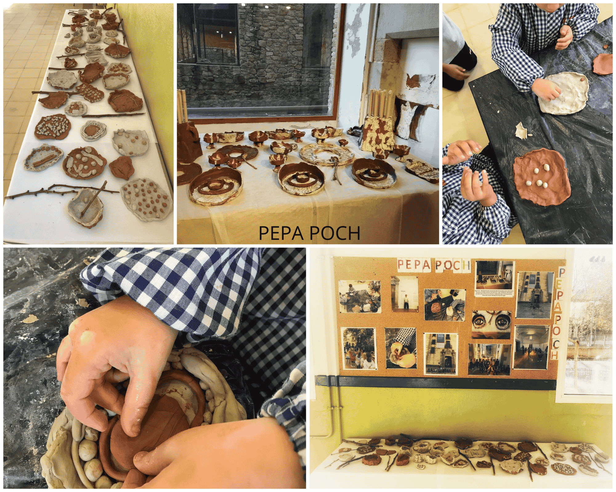 Després de la visita a l’exposició d’escultures de l’Espai Carmen Thyssen, els nens i nenes d’I4 i I5 s’han convertit en petits artistes. Recordant l’obra de Pepa Poch anomenada “Aboriginal Land” formada per 26 peces de ceràmica, han intentat reproduir-la tot modelant fang per crear plats, safates, tasses …