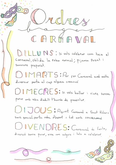 Benvolgudes famílies, Amb la bicicleta cedida per Cardedeu Vital han arribat les ordres boges del Carnestoltes!Potser ens vol fer perdre la xaveta, aquesta reina dels pocasoltes? Aquí podeu veure el cartell elaborat pels infants de 6è. Recordeu que dijous, dia 12 de febrer, farem la sortida de tota l’escola a Sant Hilari per celebrar el
