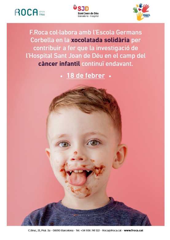 Benvolgudes famílies, El proper dimecres 18 de febrer participem, un any més, en laXocolatada Solidària: AQUÍ Cal que els infants portin un got reutilitzable i 1’5€ per poder comprar l’esmorzar: xocolata, coca i galetes al·lergògenes que ens proporciona F.ROCA. El fons recaptat serà per Sant Joan de Déu. Amb la nostra donació aconseguirem millorar