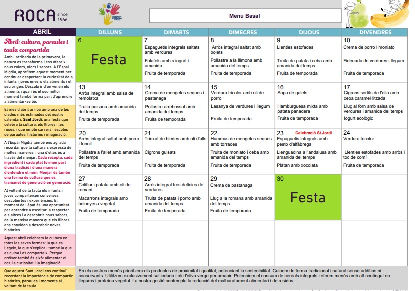 Benvolgudes famílies, Us fem arribar els menús del mes d’abril.