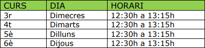 Tardes: dilluns, dimarts i dijous de 16 a 19h.