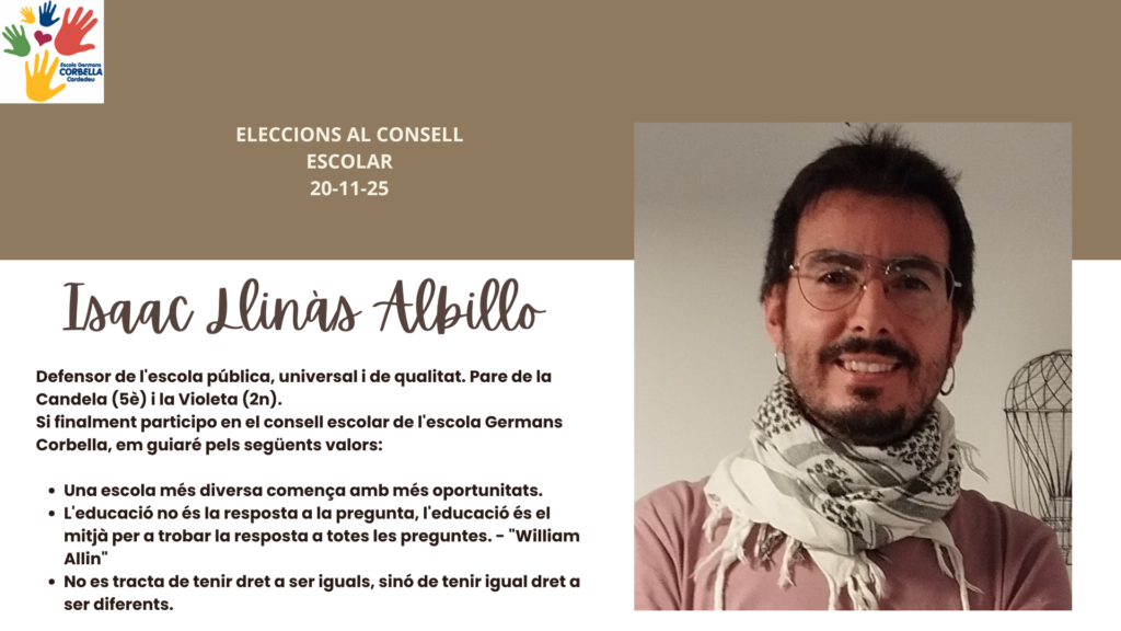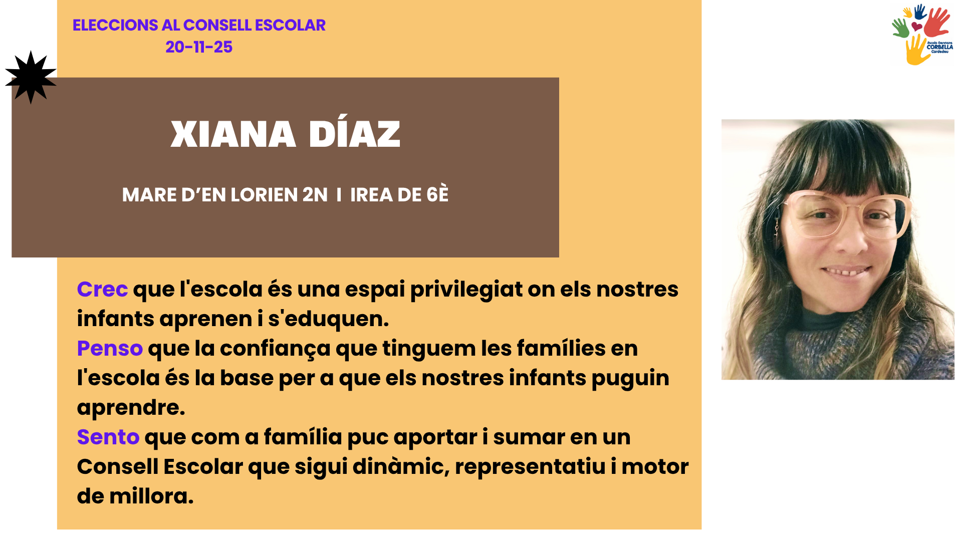 Ens fa molt goig presentar-vos les famílies compromeses, participatives i valentes que es presenten a les eleccions del Consell Escolar pel sector famílies, que tindran lloc el proper dijous 20 de novembre de 2025.