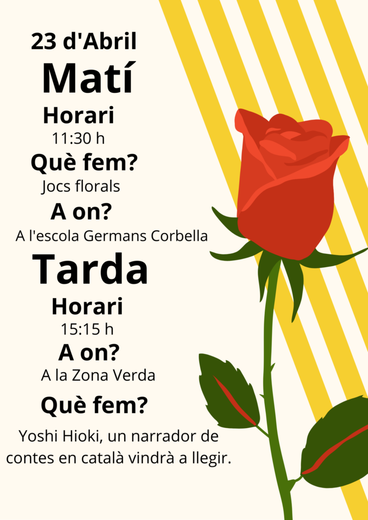 Ens fa molta il·lusió compartir amb vosaltres el programa d’activitats de la diada de Sant Jordi. Els cartells informatius han estat elaborats per l’alumnat de 4t de primària, que hi ha posat molta creativitat!