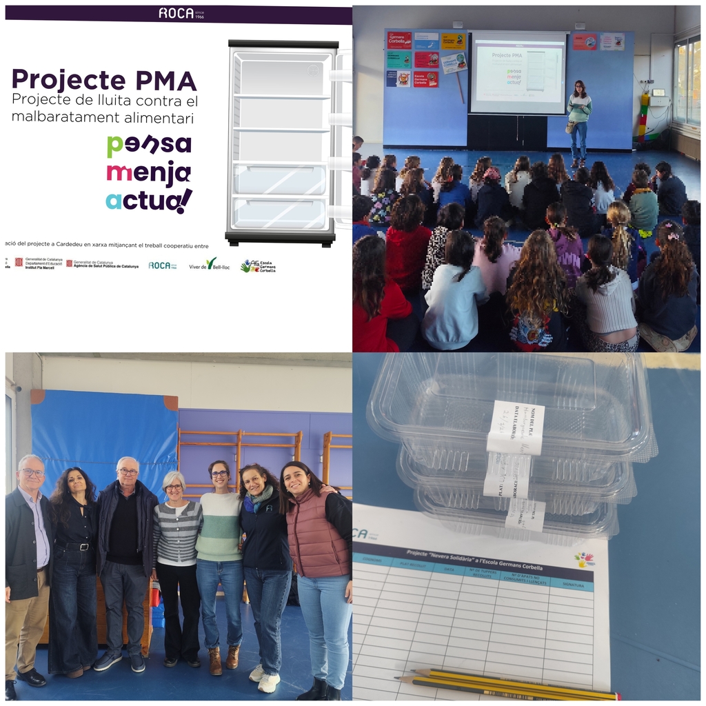 Iniciem el projecte Pensa, Menja i Actua, per a la conscienciació sobre el malbaratament alimentari, vinculat a la Nevera solidària. Es tracta d’un projecte de reaprofitament alimentari que té com a objectiu aprofitar els menús sobrants del servei de menjador per reduir el malbaratament i fomentar un consum responsable. S’instal·larà una nevera i els aliments que utilitzarem seran tots aquells cuinats el mateix dia, que s’han elaborat pels infants i no han sortit en cap moment al servei. Han estat dins de les temperatures correctes de fred i calor, per tant, no ha tingut cap mena de contaminació.