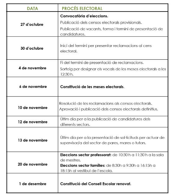 Compartim amb vosaltres el calendari de tot el procés electoral fins a la constitució del nou Consell.