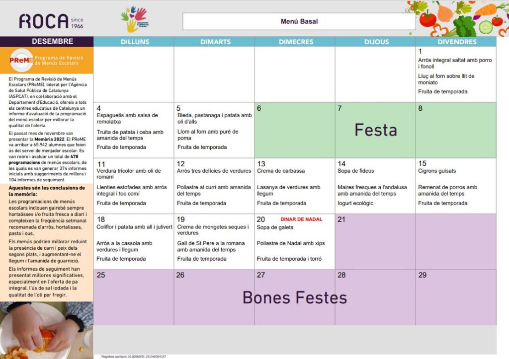 El Programa de Revisió de Menús Escolars (PReME), liderat per l’Agència de Salut Pública de Catalunya (ASPCAT), en col·laboració amb el