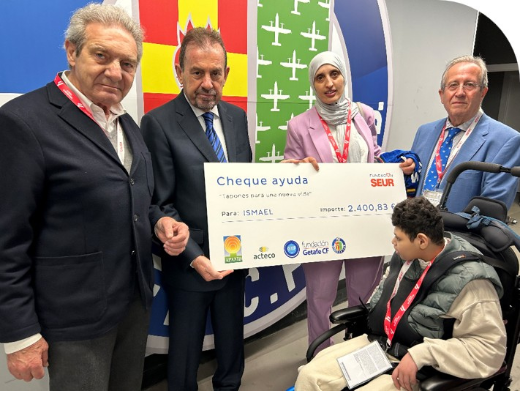 L’acte va tenir lloc a l’estadi Coliseum, un escenari molt especial per l’Ismael, seguidor del Getafe C.F. just abans del partit. Van fer entrega del xec a l’Ismael i la seva mare, Ramón Mayo, President de la Fundació Seur, ángel Torres, President del Getafe FC i José Luís del Sad, President d’Apanid.
