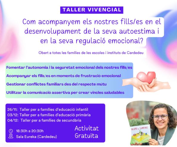 Els tallers estan oberts a totes les famílies de les escoles i instituts de Cardedeu i s’han organitzat per etapes (infantil, primària i secundària) en tres dies diferents. Aquí us deixem tota la informació: