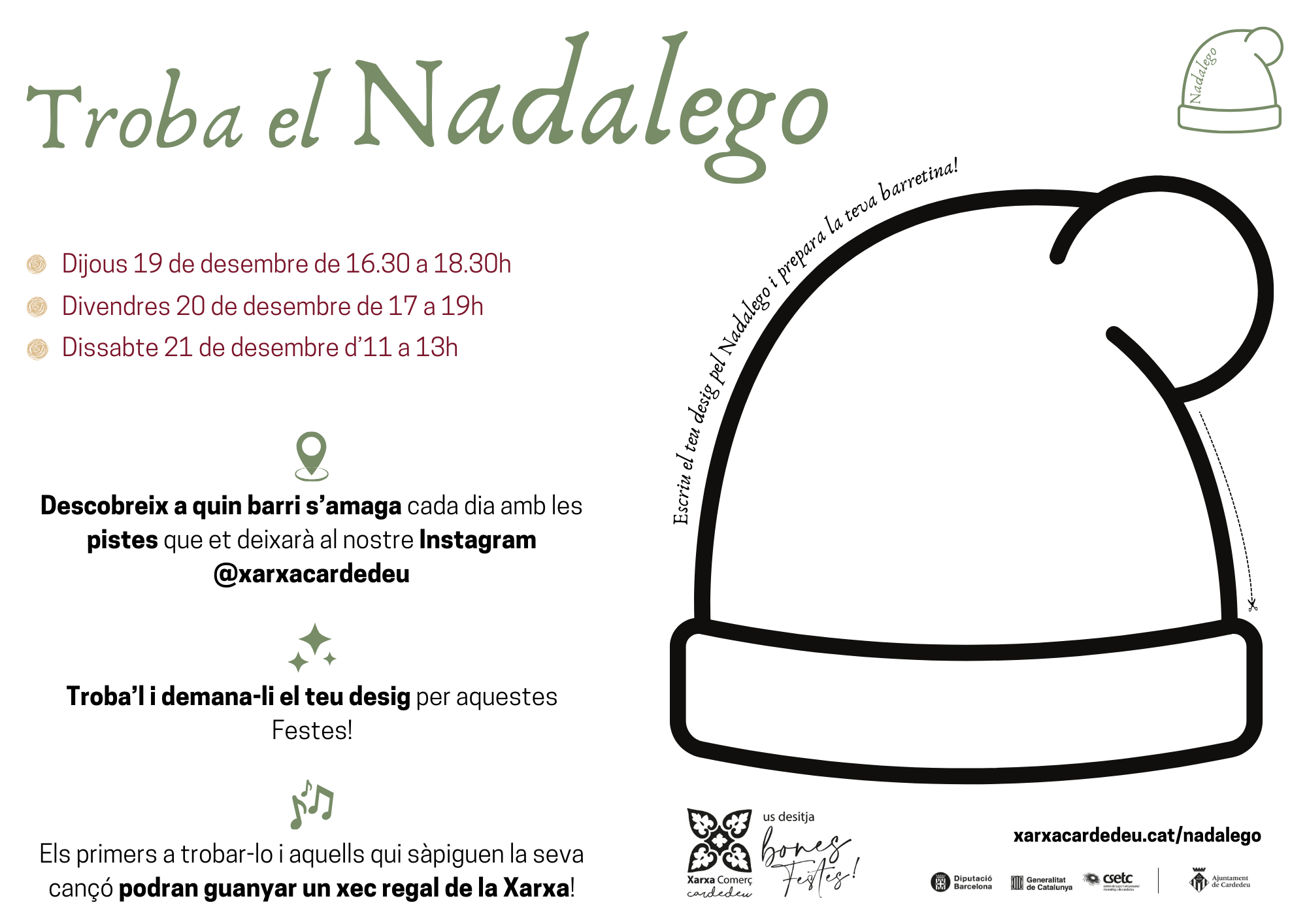 Tota la informació també es pot trobar a xarxacardedeu.cat/nadalego.