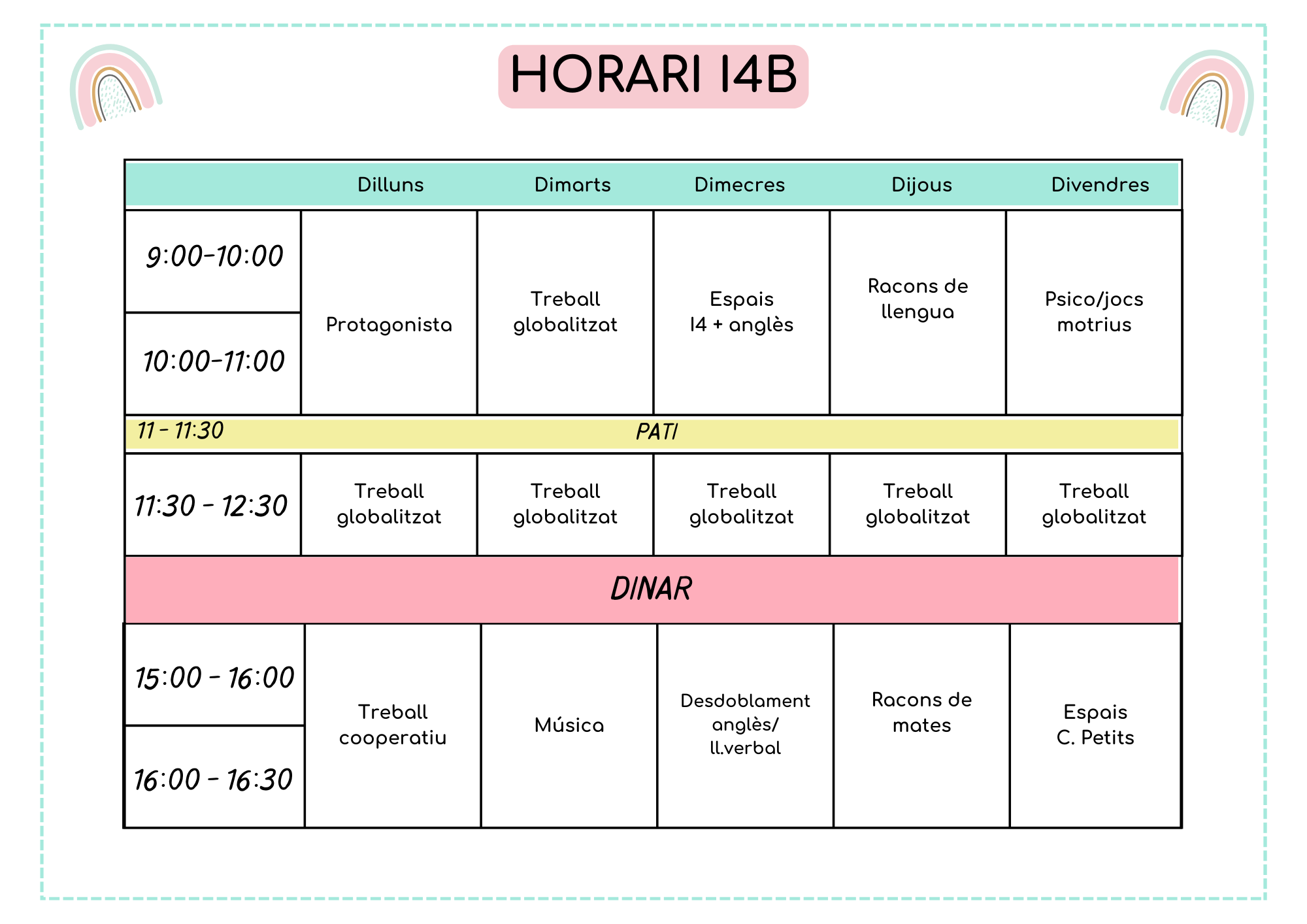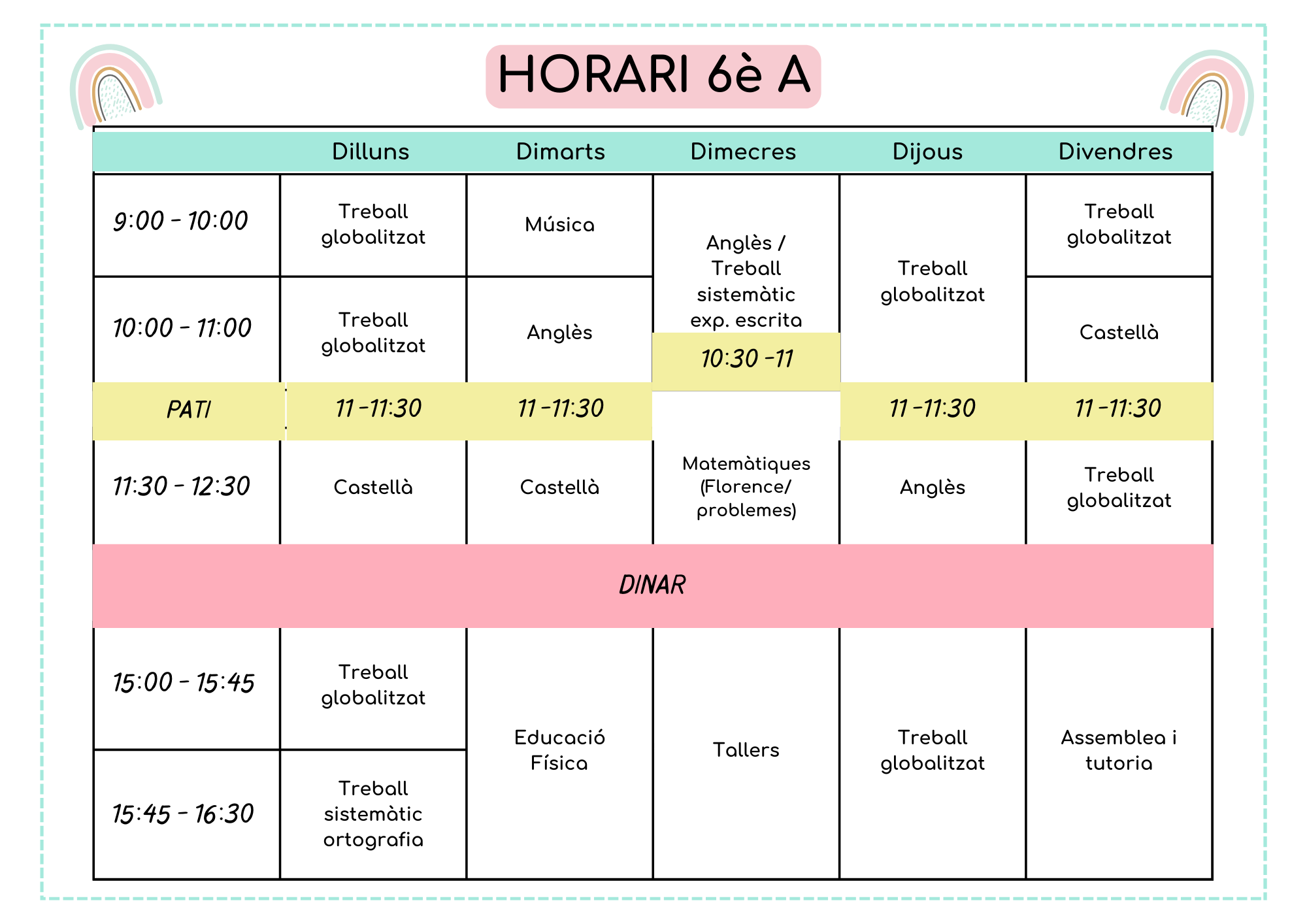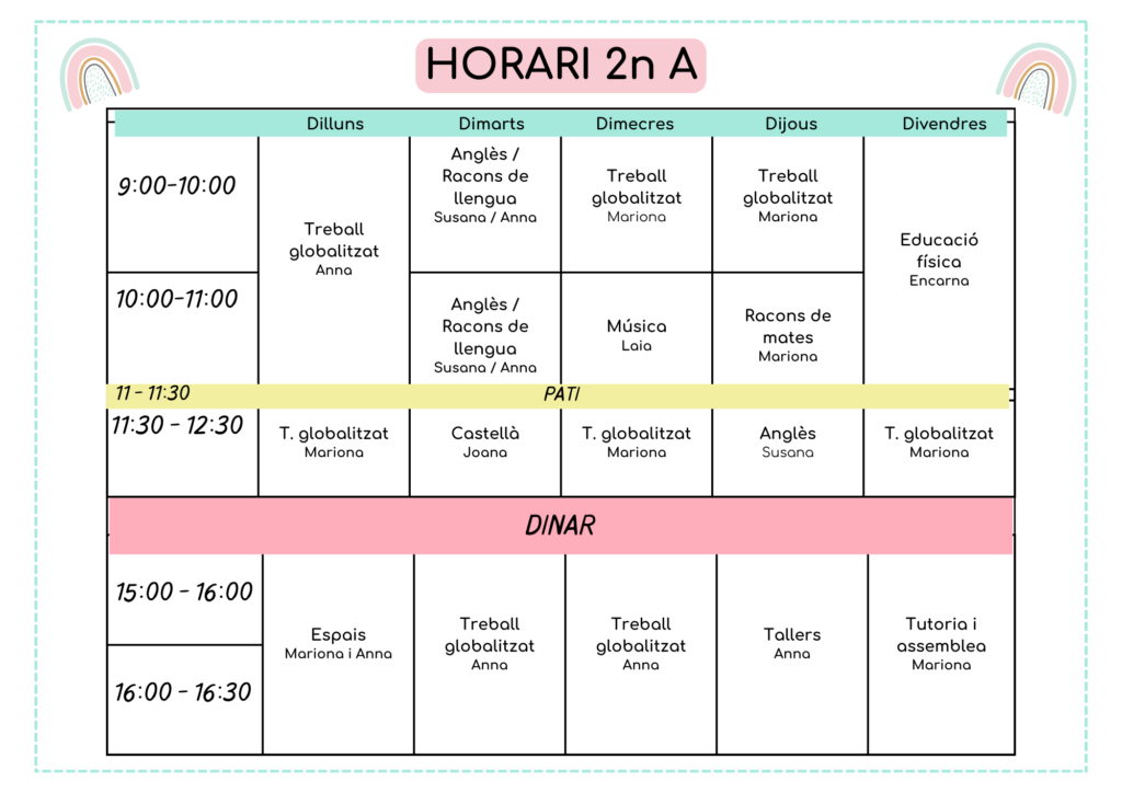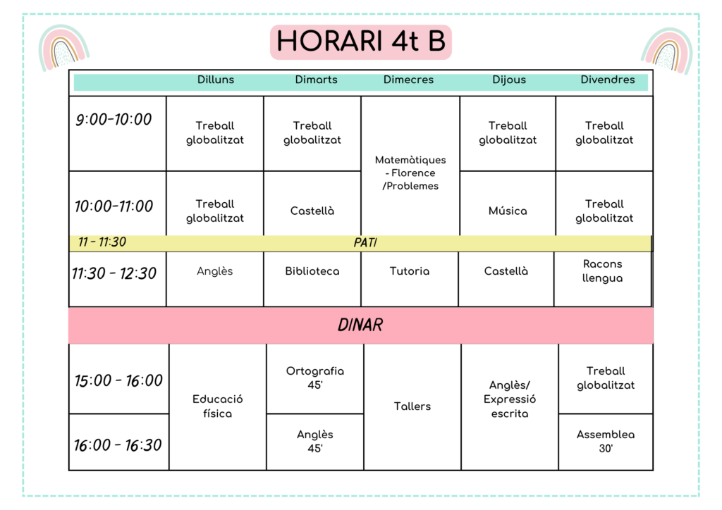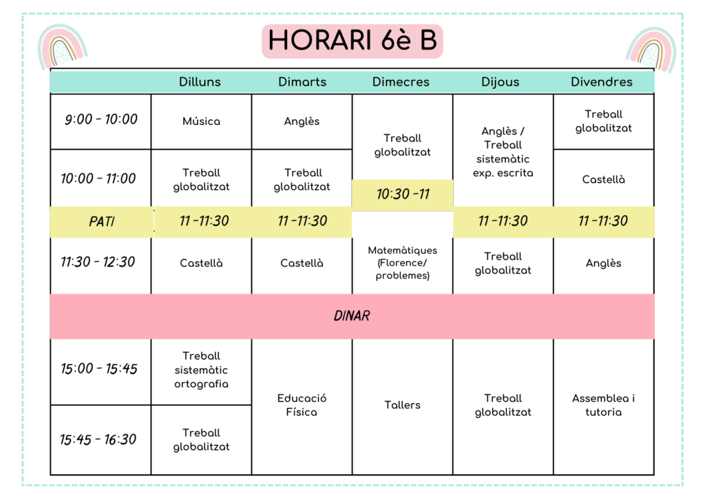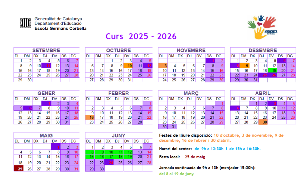 A continuació els horaris d’aula d’aquest 2025-2026: