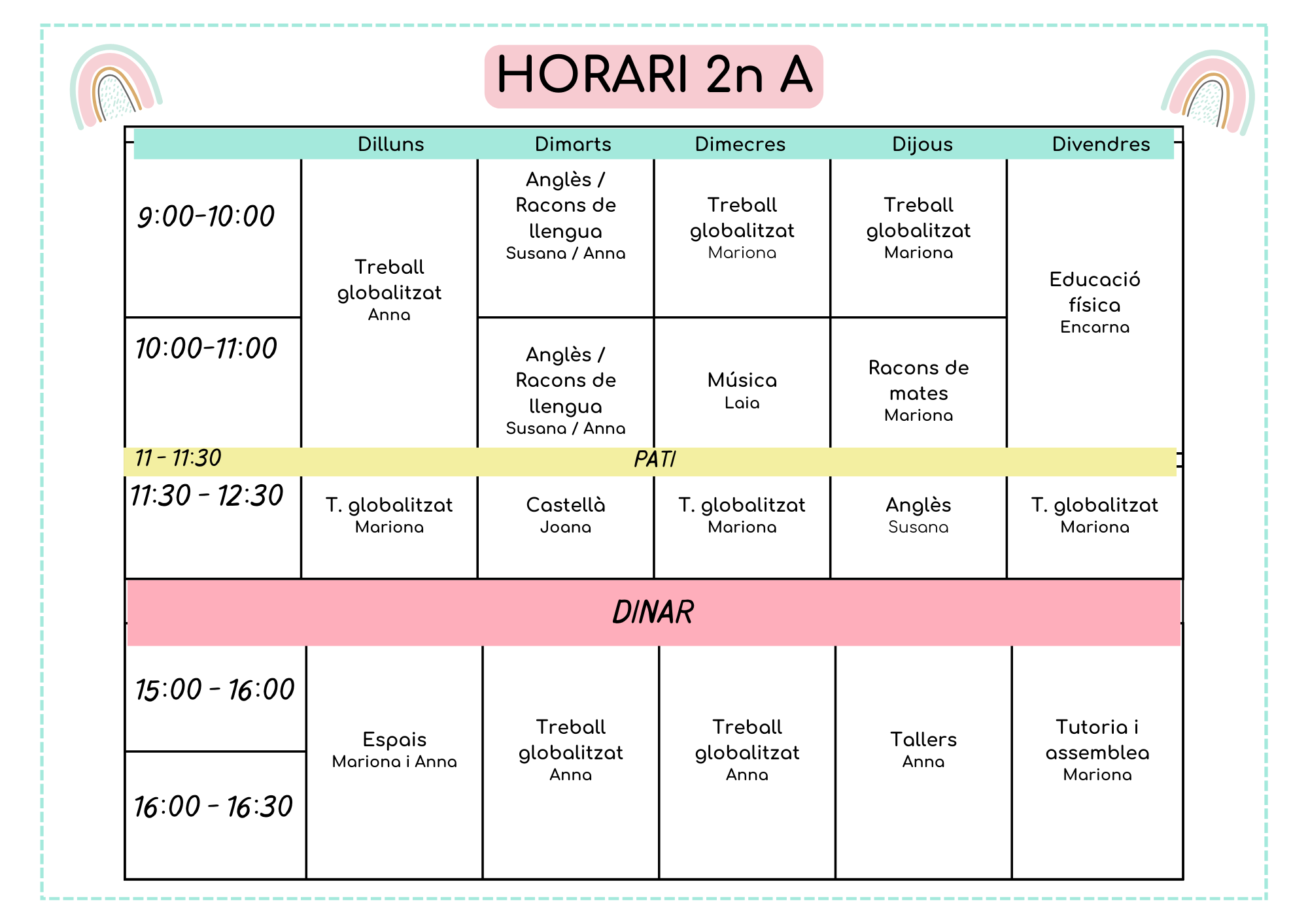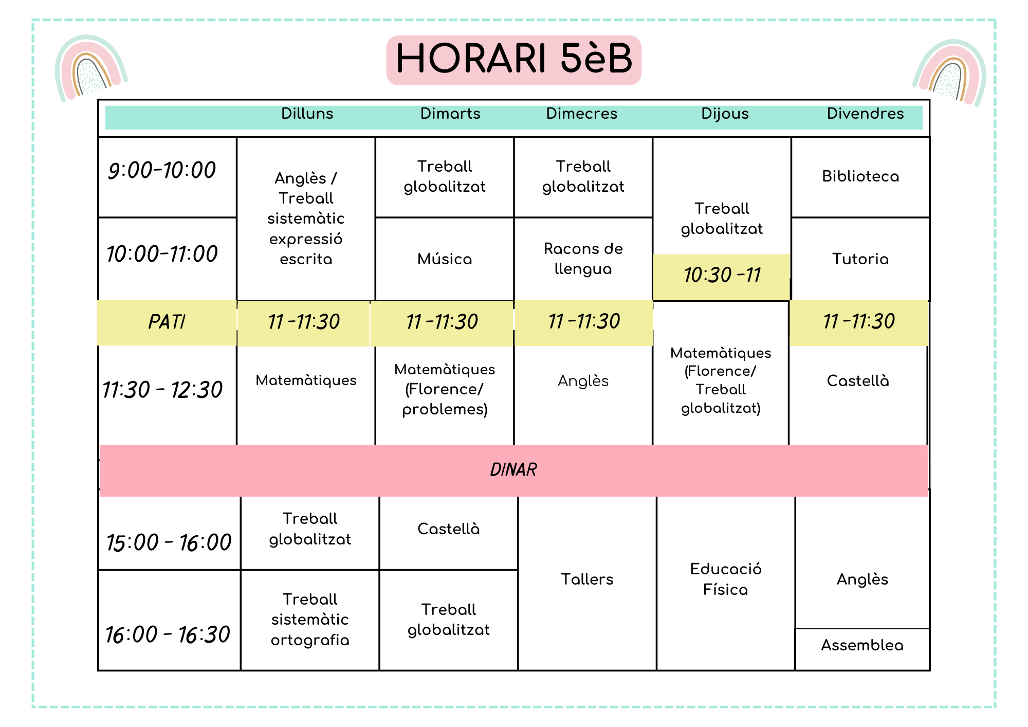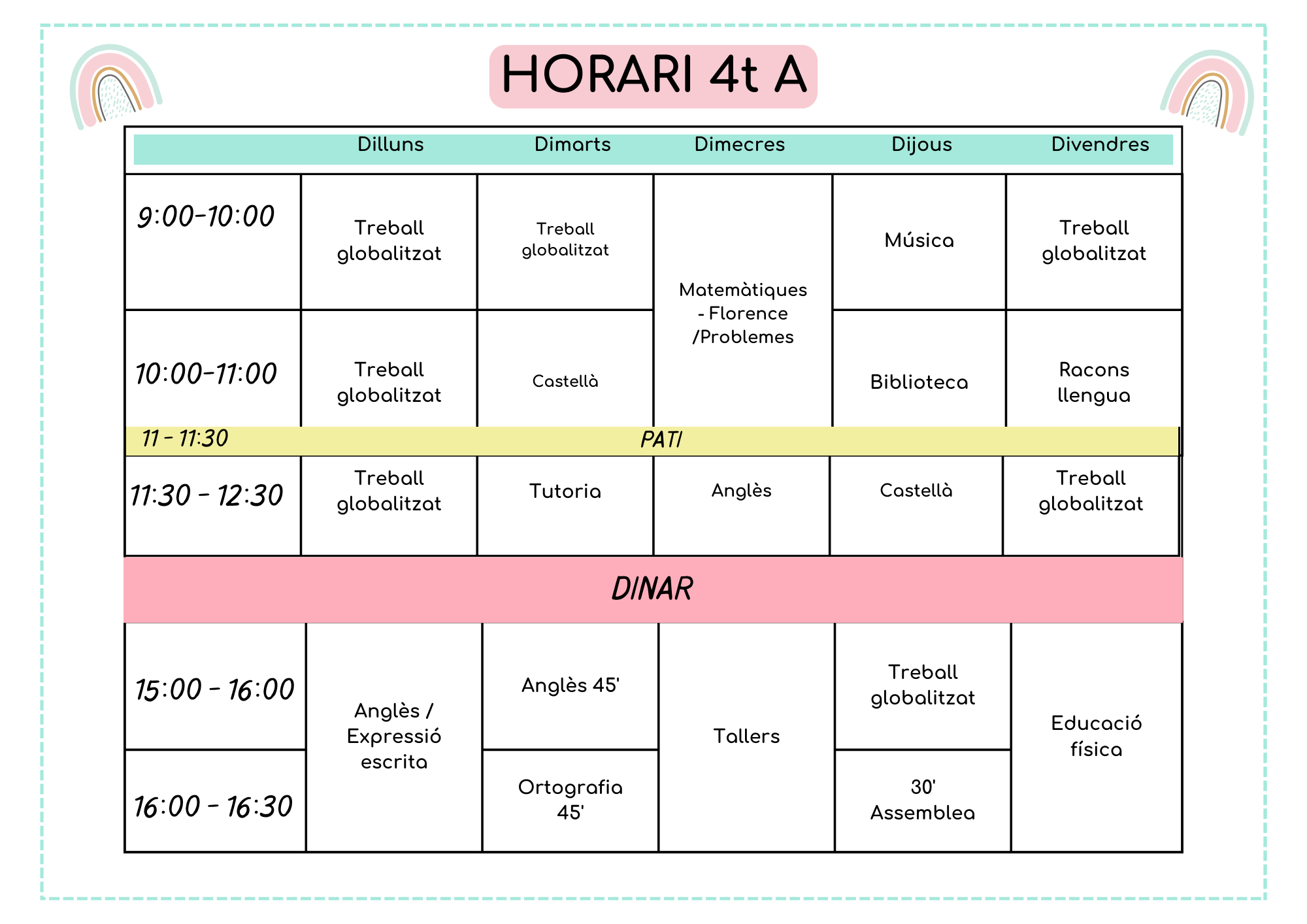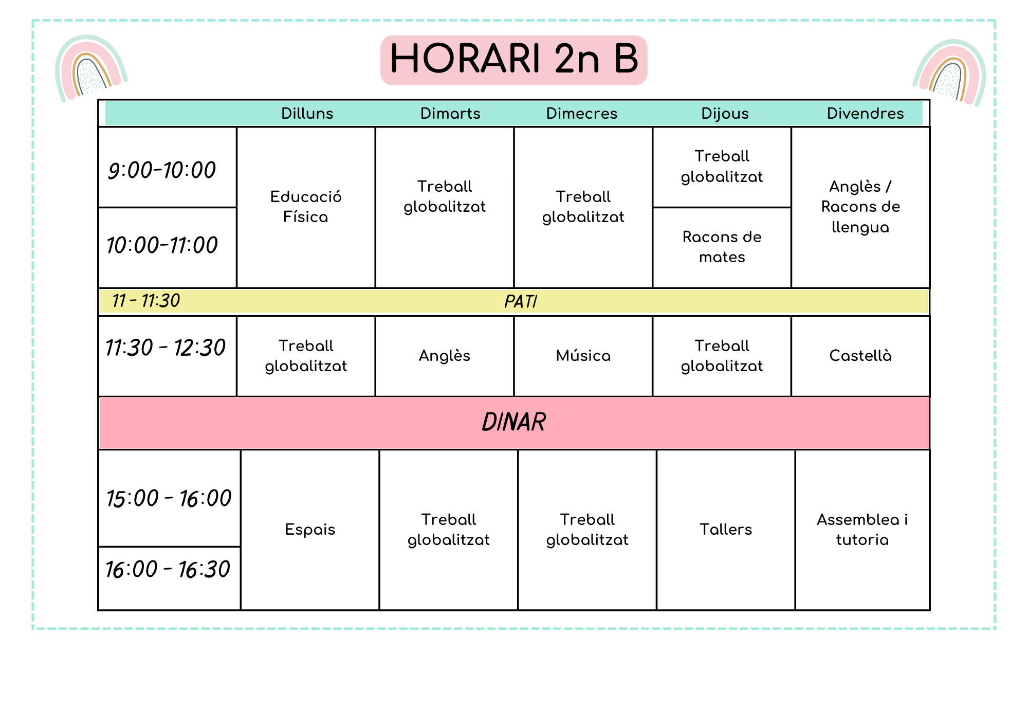 A continuació els horaris d’aula d’aquest 2025-2026:
