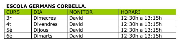 Des de l’Institut Municipal d’Esports de Cardedeu ens comuniquen que es reprèn a la pista de l’escola l’ AULA ESPORTIVA per a l’alumnat de 3r a 6è que s’hi inscrigui. L’horari serà:
