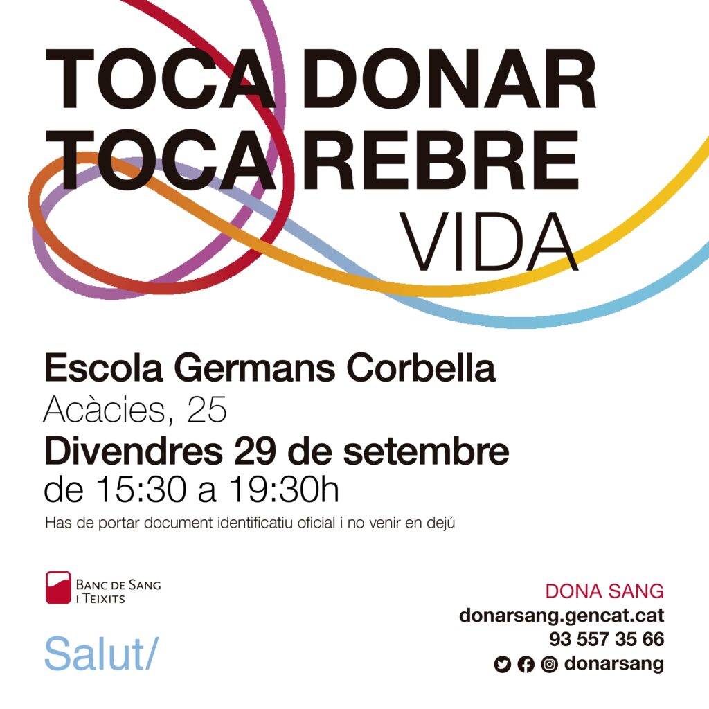 Podeu fer clic al cartell per apuntar-vos a la donació de sang, segons la franja horària que millor us vagi.