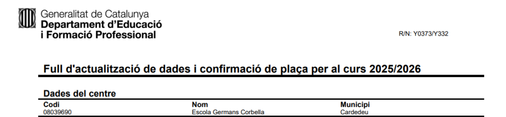 Confirmació de plaça i actualització de dades 25-26 Llegeix més »