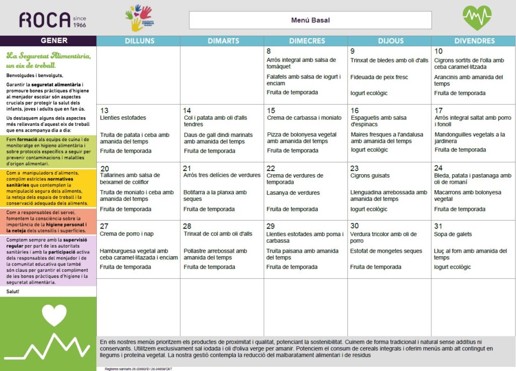 Benvolgudes famílies, Us fem arribar els menús del mes de gener.