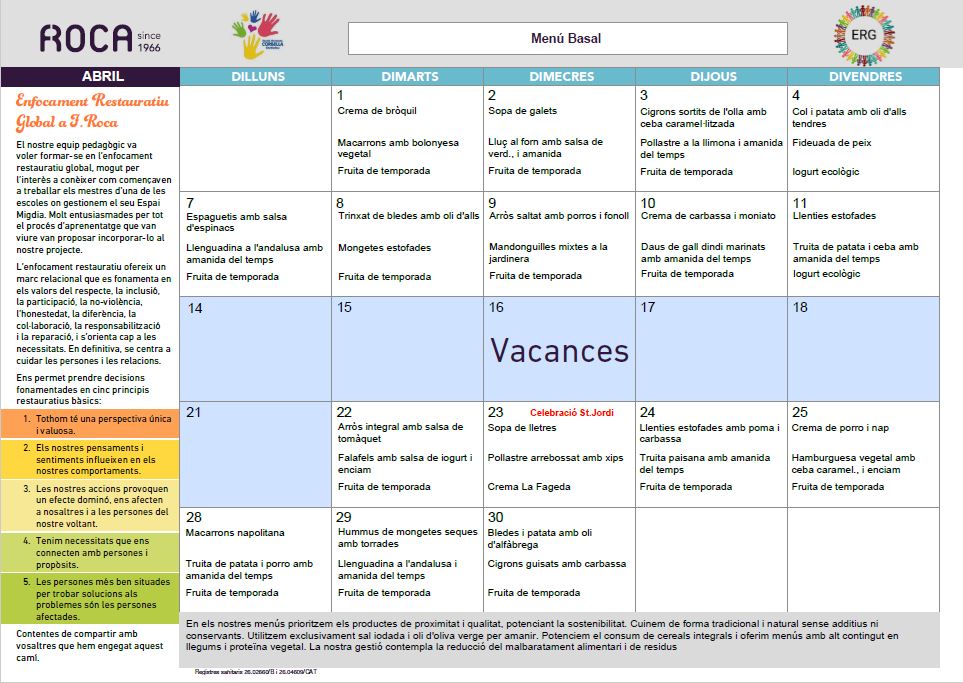 Benvolgudes famílies, Us fem arribar el menú del mes d’abril.