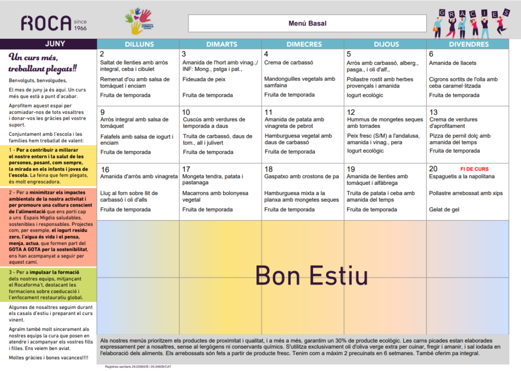 Benvolgudes famílies, Us fem arribar el menú del mes de juny.