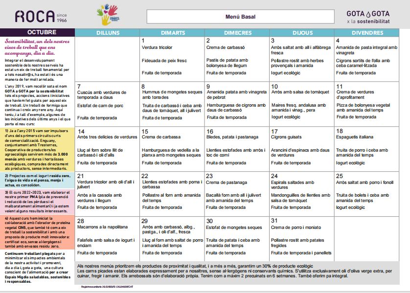 Benvolgues famílies, Us fem arribar els menús d’octubre.