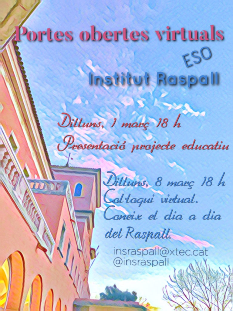 Benvolgudes famílies, Us recordem que avui finalitza el termini de preinscripció escolar. La confirmació de plaça per a la continuïtat al centre (curs 2026-2027) es donarà després de Setmana Santa. A tenir en compte: Infants nascuts el 2023 (I3) Alumnat de 6è que ha de fer la preinscripció a l’institut. Per qualsevol dubte, podeu contactar […]