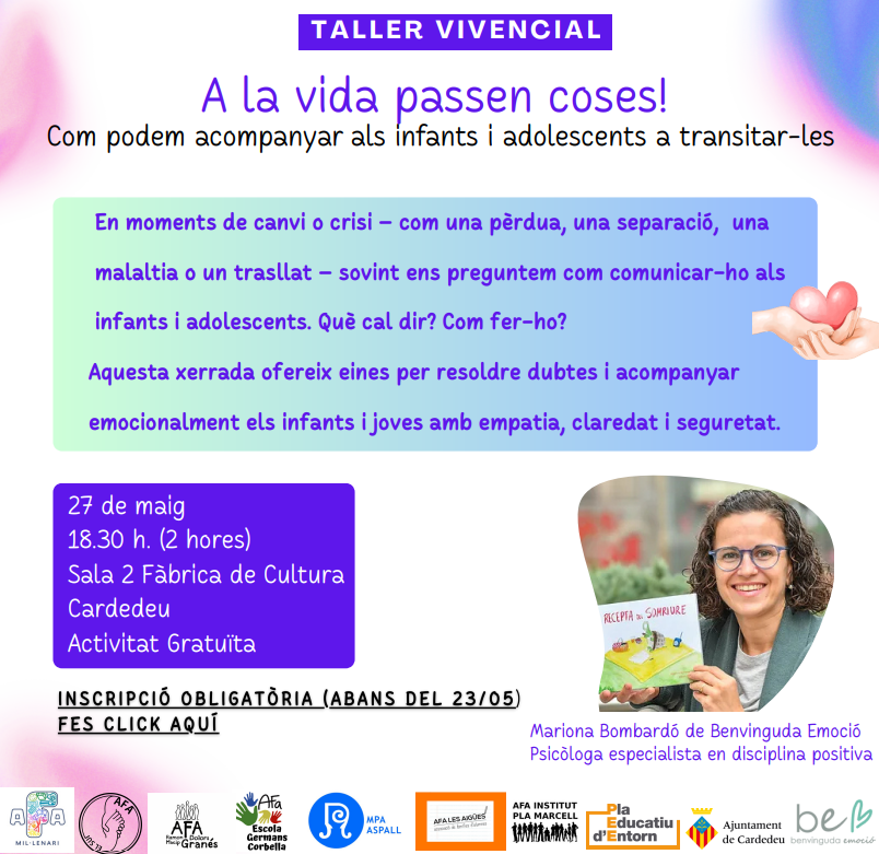 Benvolgudes famílies, En el marc de la programació d’activitats per commemorar el 8 de març, Dia Internacional de les Dones, us informem que el proper 18 de març a les 17.30 h, a la Sala Eureka (Av. Àngel Guimerà, 126), tindrà lloc el taller: “Educar en temps d’odi: un repte comunitari”A càrrec de Míriam Aleman […]