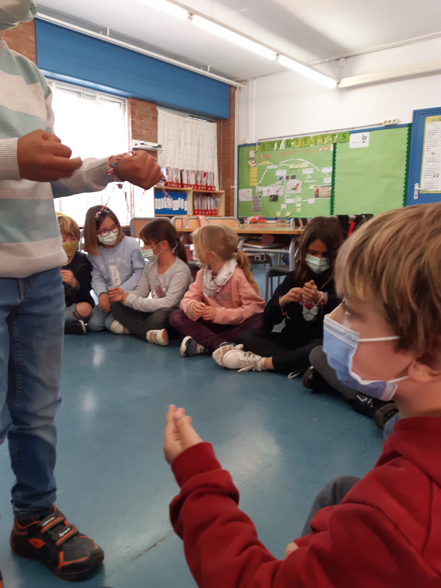 El dimarts passat la classe dels lloros, 1r A va rebre la visita de la mare de l’Asier, company de l’aula, per a compartir amb tots/es els nens/es del grup un taller de polseres.