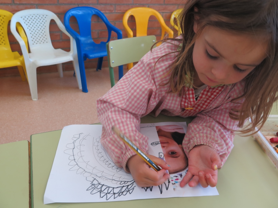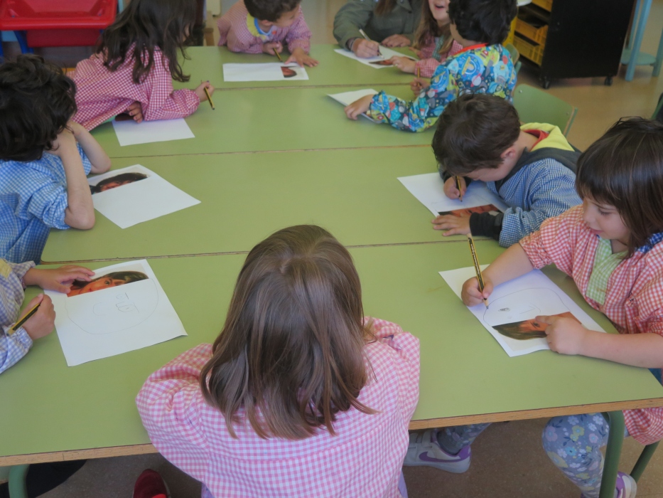 Amb els pares de la Clàudia Riba , els nens i les nenes de la classe dels cavalls, hem dibuixat la meitat de la nostra cara al costat de la meitat de la nostra foto . Ens hem fixat com eren els nostres cabells , ulls , celles , nas, boca …Després ho hem pintat i ens ha quedat molt di. Moltes gràcies !!!!!