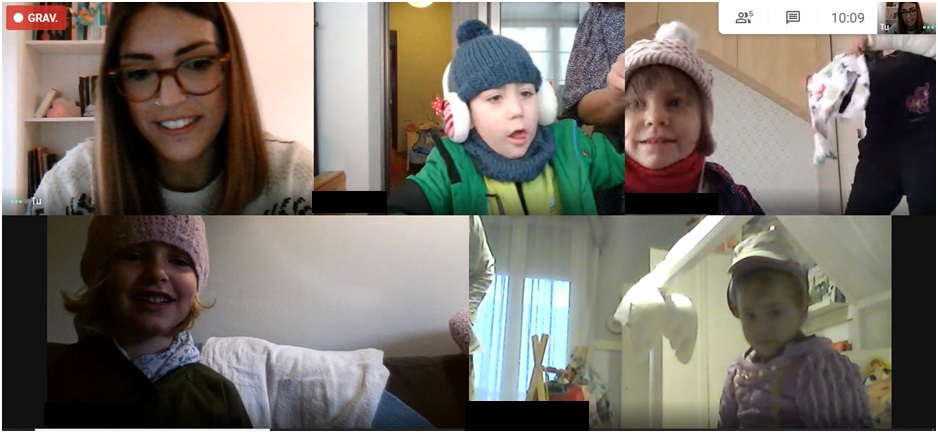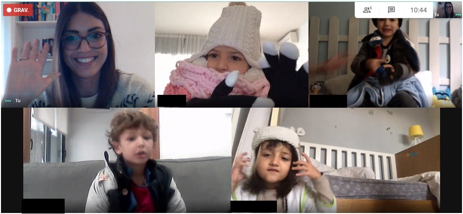 Durant les videotrucades hem fet el temps del bon dia, hem jugat al penjat, al memory dels noms, a fer sumes,… i divendres vam fer psicomotricitat a casa! Vam jugar al joc de “Abriga’t molt” i al “El rei o la reina demana...”.