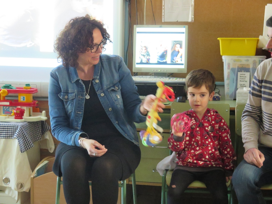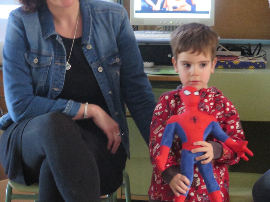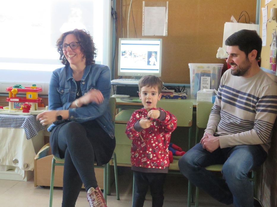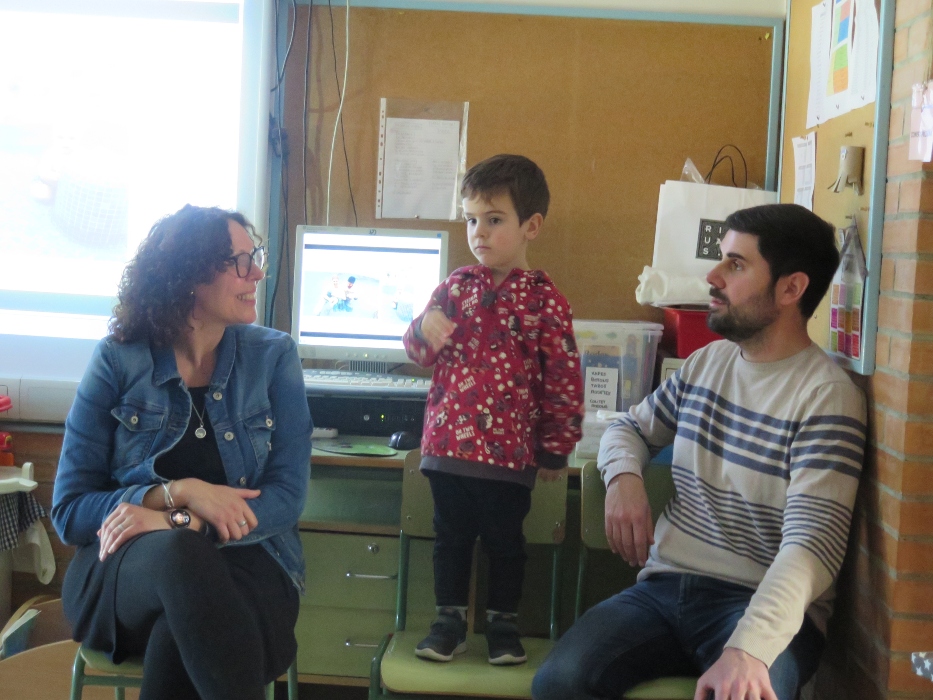 La Laura i el Mario ens han explicat moltes coses de la vida del Mateo. Ens han ensenyat robeta i joguines de quan era petit. El Mateo té uns iaios a Sabadell i uns abuelitos a Astúries. També té dos cosins i una cosineta i també té un gos que es diu JANO que li llepa la cara i el tiba quan es cansa amb la bicicleta. Al Mateo li agrada molt la xocolata, la música, la piscina, fer legos, jugar a cotxes i al futbolí .El Mateo ens ha cantat la cançó dels seus dibuixos preferits EL REI LLEO i LA PATRULLA CANINA. Al final la Laura ens ha explicat un conte molt bonic. Moltes gràcies, família, per la bonica estona que hem passat amb vosaltres i per ajudant-nos a conèixer més al vostre meravellós fill.