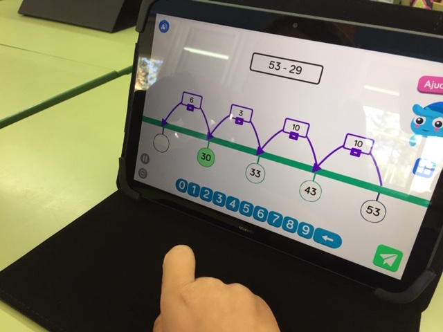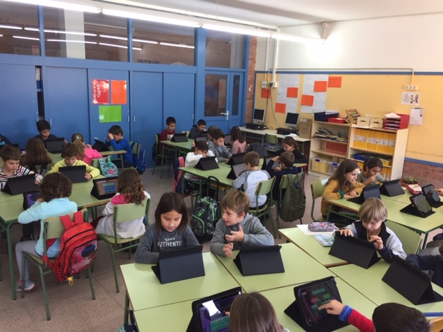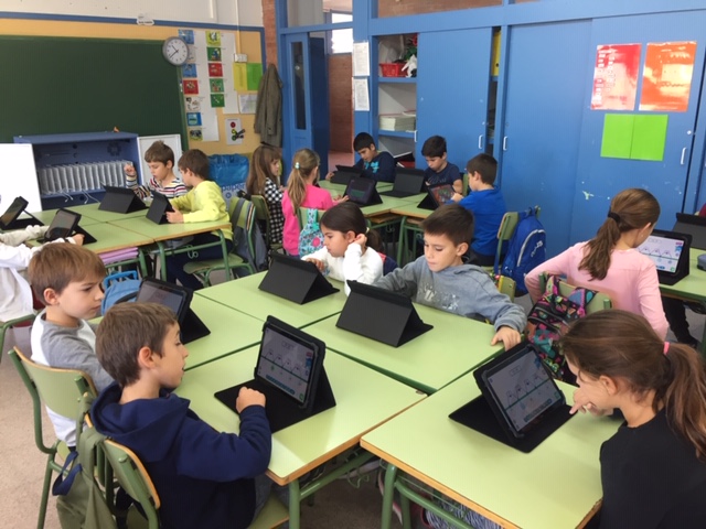 Des de fa una setmana l’alumnat de l’escola ja fa ús de les tauletes. Mitjançant aquesta eina treballem una part dels continguts de les competències matemàtiques, a través de la plataforma Innovamat. Cada alumne té el seu nom i codi d’usuari i el treball és individual i gairebé100% autònom. El programa reforça o amplia aquells continguts que ho requereixen, en funció del progrés de cada alumne. Actualment segueixen el programa Innovamat les nenes i nens de 1r. a 3r. i fan ús de la plataforma digital 1 hora a la setmana.