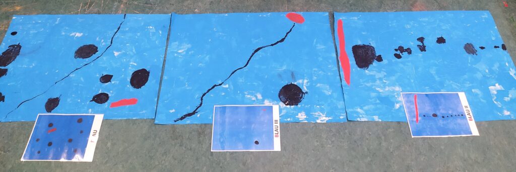 Les Balenes Rorquals estem gaudim molt del projecte de Joan Miró. Hem començat a conèixer una mica més la seva vida, els seus gustos i les seves obres. N’hem treballat dues de molt reconegudes, “Autoretrat” i “Immersió blava”. L’Autoretrat l’hem fet amb una base de xocolata desfeta i una vegada seca, amb el suport del