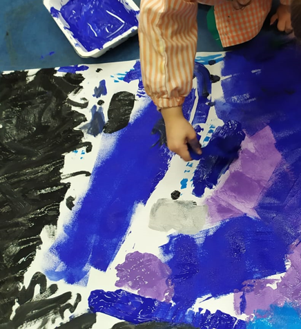 Els nens i les nenes d’I4 hem gaudit molt experimentant amb els colors per fer el nostre mural de l’hivern.