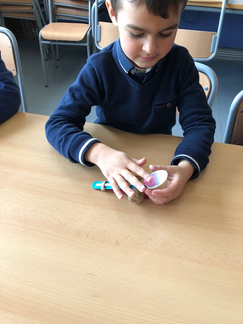 Les nenes i els nens de la classe de les papallones hem construït una catapulta. Si ho voleu fer a casa, necessitareu: – Pals de fusta plans. – Pomes elàstiques. – Una cullera de plàstic. Aquí teniu una mostra dels nostres llançaments!!