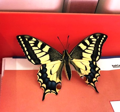 Aquest dilluns 23 tornant de la representació de Sant Jordi, ens hem trobat aquesta papallona sobre les safates.