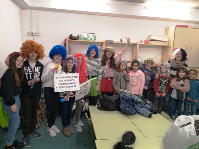 Quan ja estàvem preparats per començar a treballar… Han arribat unes ajudants del Rei Carnestoltes amb els delegats i delegades fent molt de soroll!! Ens han fet sortir de la classe i han donat el tret de sortida a la gresca del Carnaval!
