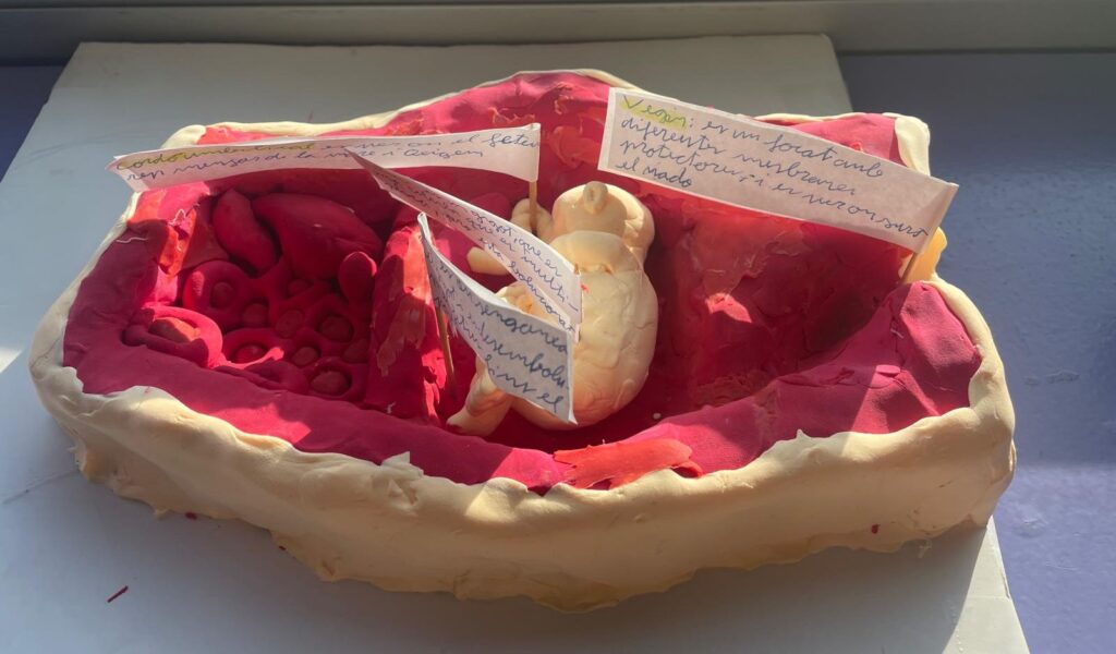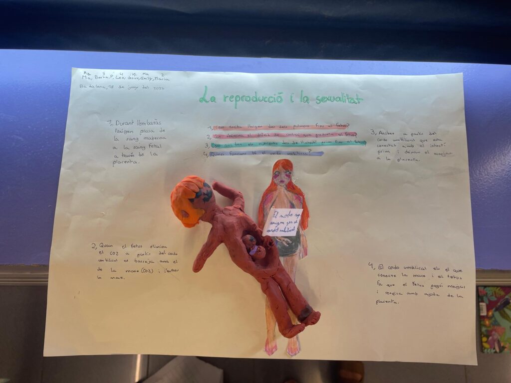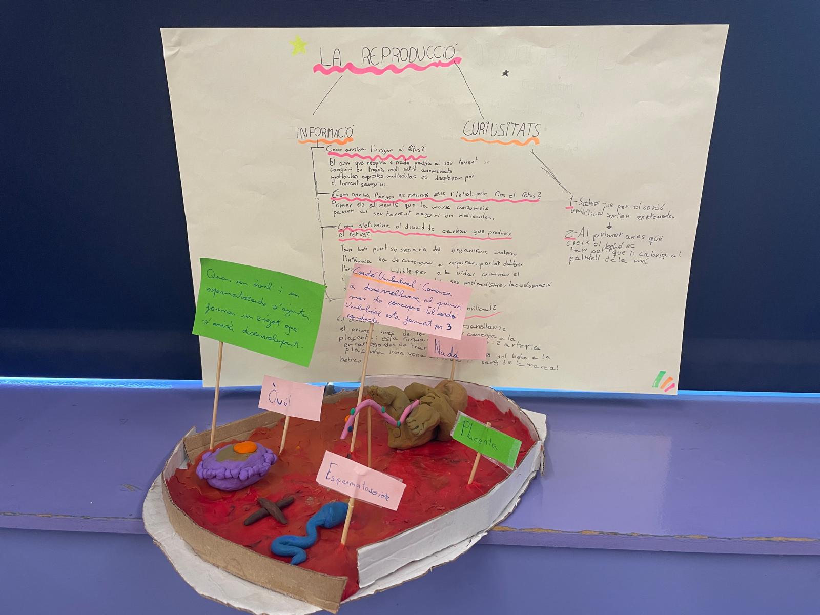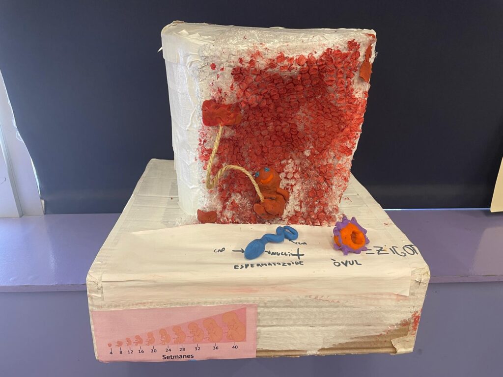 Durant l’últim tram de curs hem estudiat la reproducció i la sexualitat, una temàtica que trobem interessant i necessària. Una de les feines que hem fet ha estat crear una maqueta en grups. L’objectiu era mostrar alguns processos que realitza el fetus dins el ventre de la mare i aprendre sobre el procés de gestació. Ha estat una activitat divertida.