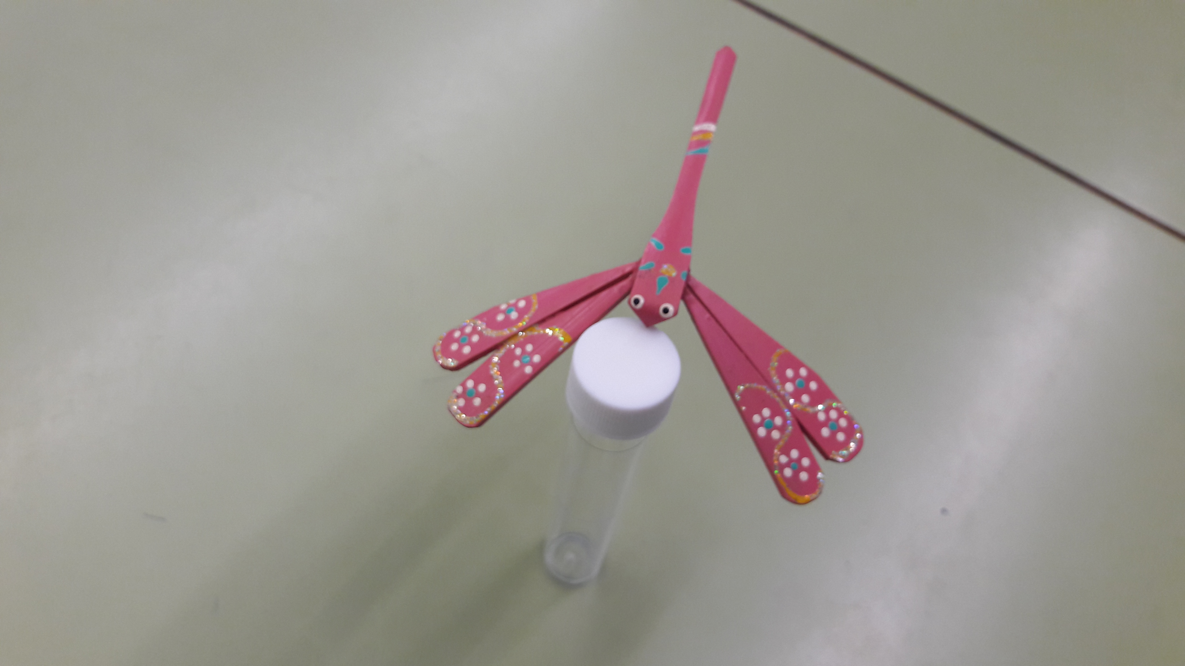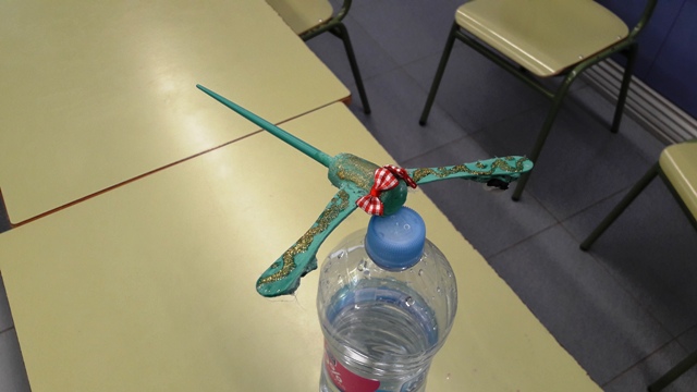 • Els ulls són de plastilina, el cos un tap de suro, les ales de pals de gelats, la cua un pal de menjar xinès.