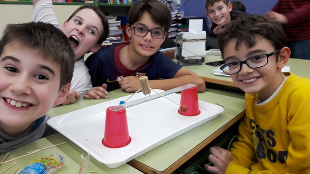 • Entre tots vam aconseguir el material. Vam construir el ninot però no s’aguantava gaire i es balancejava molt en darrera i perdia l’equilibri. Aleshores ens vam imaginar  com posa els braços un equilibrista i vam observar que nosaltres els havíem col·locat massa alts. Quan els vam abaixar,  ens va funcionar l’equilibri.