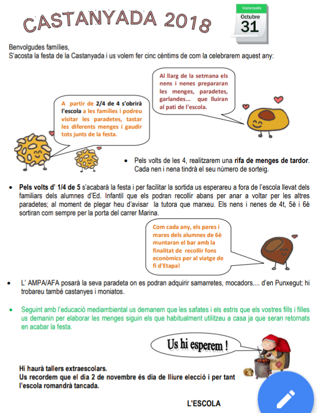 31 d’octubre: Castanyada a l’escola!Per admin / 23 d'octubre de 2018 / Portada Primària / castanyada, castanyada 18-19, tardor