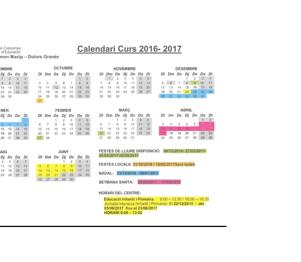 - Inici L’escola Calendari del curs