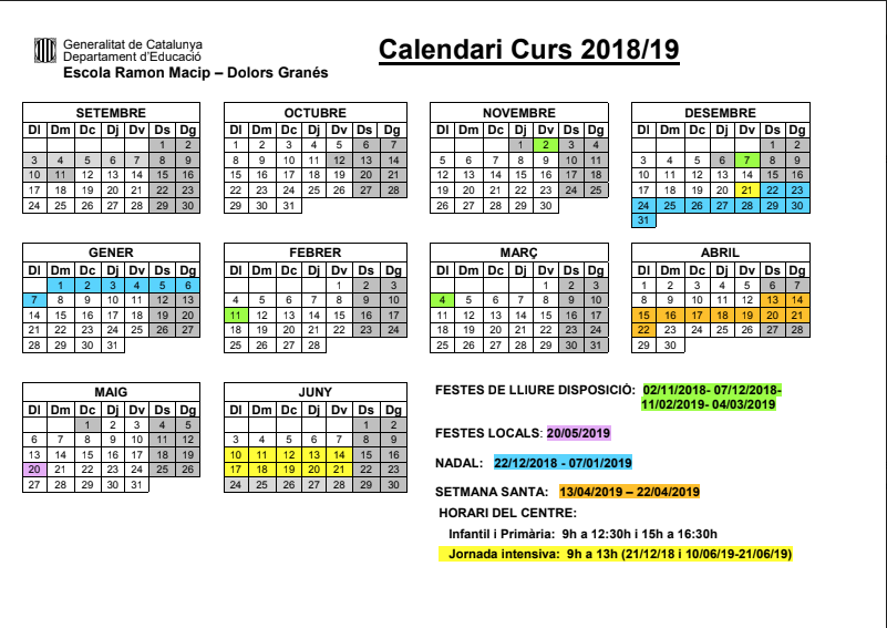 - Inici L’escola Calendari del curs