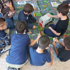 Els alumnes de 1r i 6è hem fet la primera trobada d’apadrinament lector. Hem compartit una estona junts i hem esmorzat galetes.