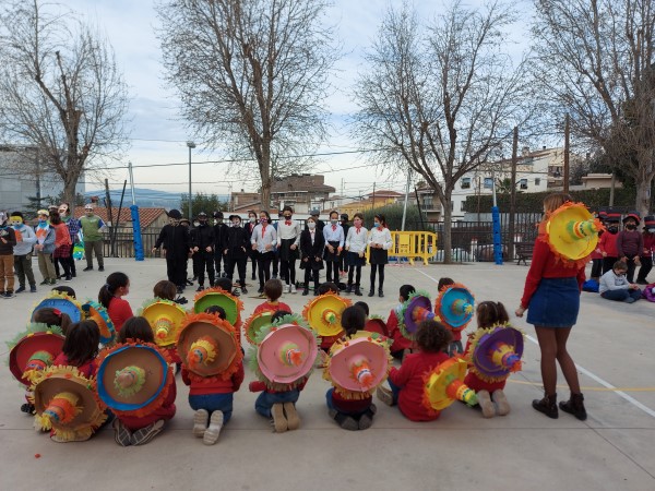 22/02/21Els divendres, vam fer una festa de carnaval per cicles. Els nens i les nenes de cicle mitjà anaven disfressats del nom de la seva classe: “El Minions”, “Coco”, “Del revés”, “Scooby Doo”, “Mary Poppins” i “Charlie i la fàbrica de xocolata”.