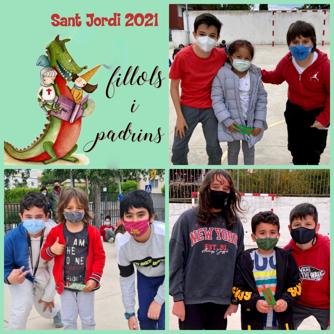 El dijous 22 a la tarda els fillols de 1r hem regalat un punt de llibre d’un drac de Sant Jordi als nostres padrins de 6è. Ho hem celebrat al pati tots els grups i hem estat molt a gust.