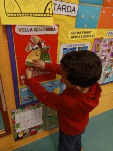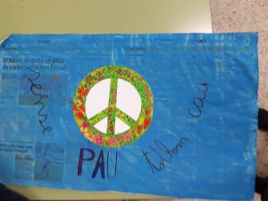 Tercer va fer un mural col·lectiu d’un colom de la pau amb missatges i desitjos, fins i tot el 3rA va participar des de casa perquè estaven confinats.