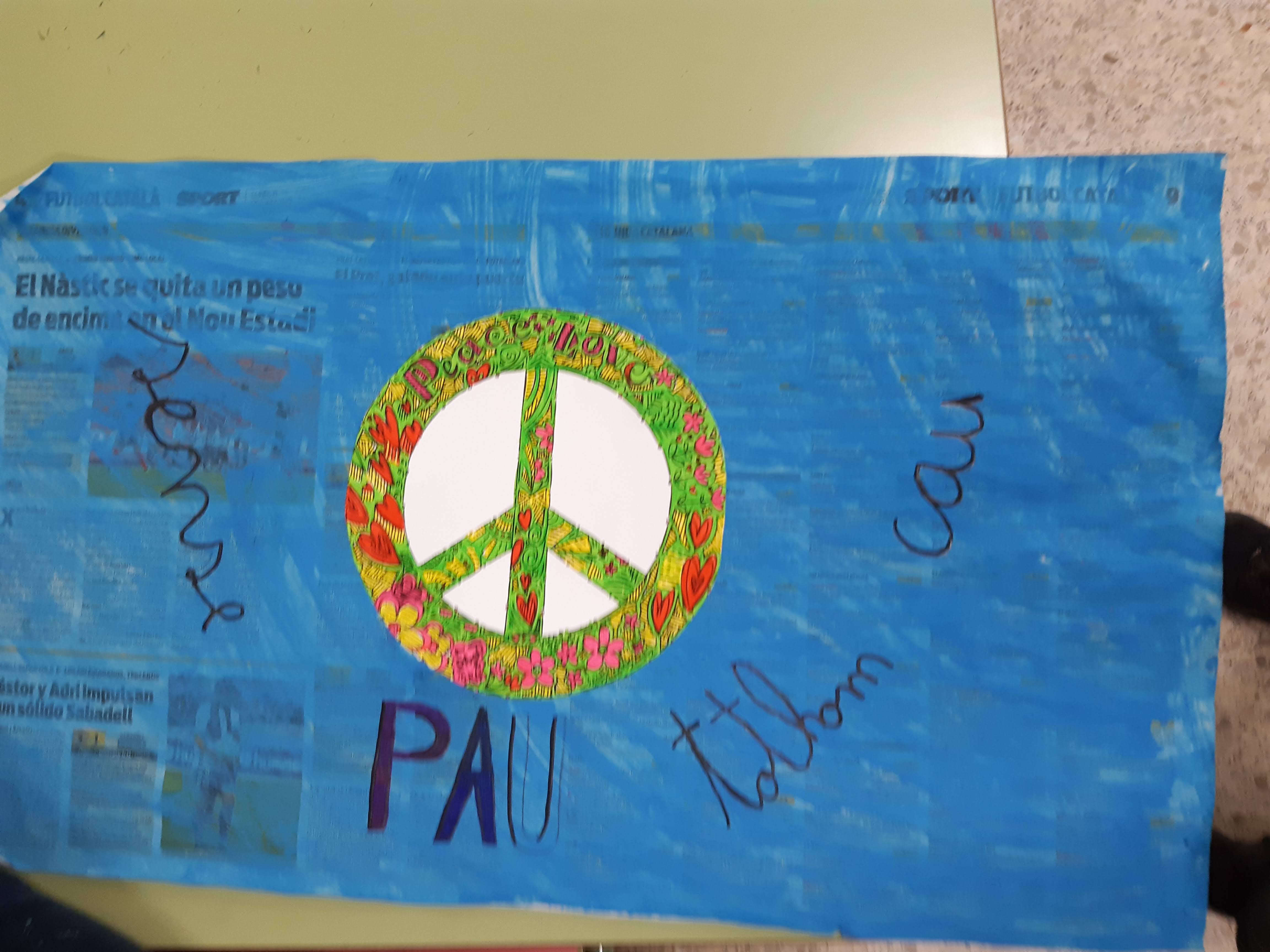 Els de 6è han buscat i escrit en un mural col·lectiu la paraula PAU amb diferents idiomes i han dibuixat de forma lliure sobre el tema.