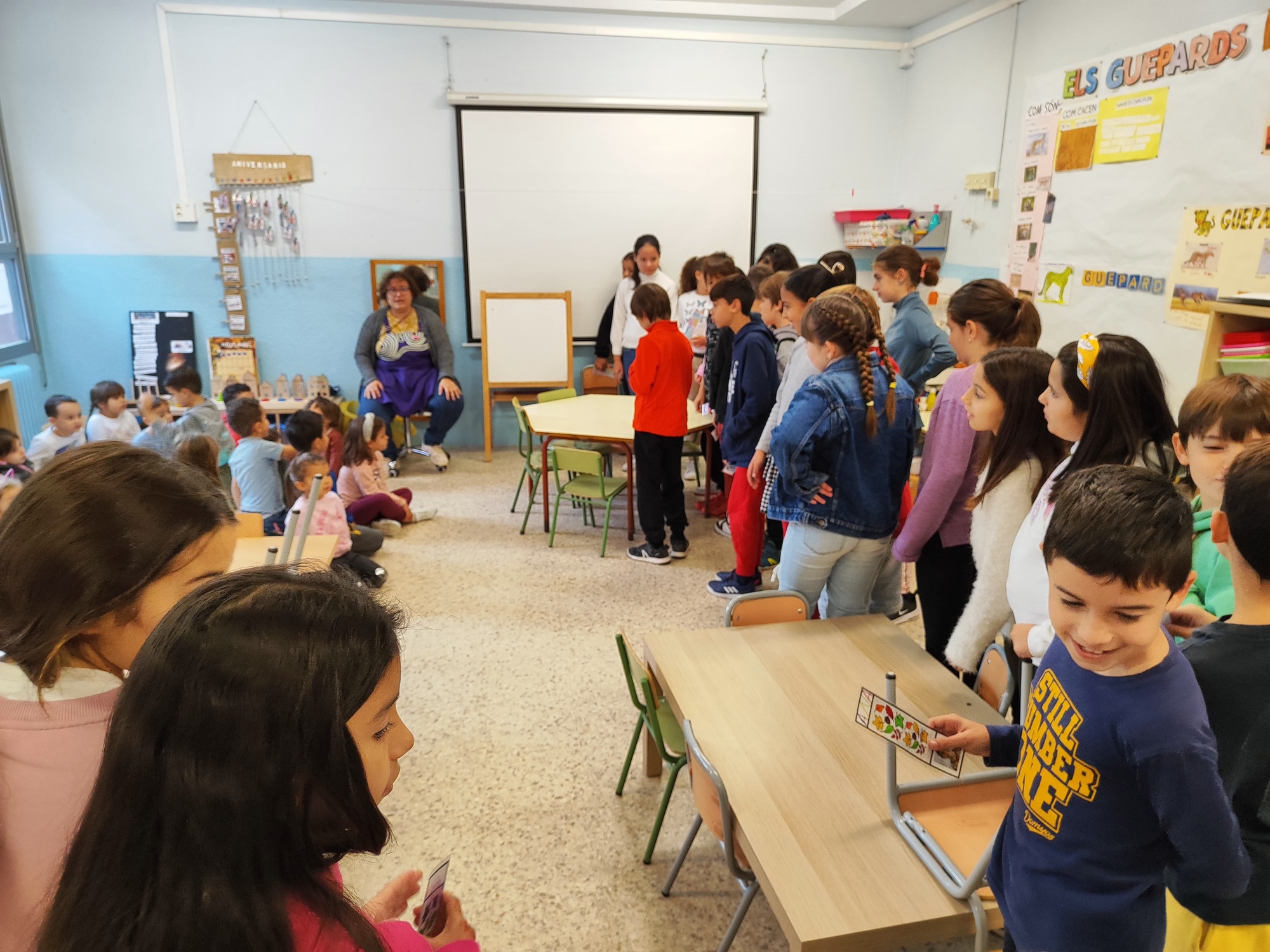 Aquestes últimes setmanes hem estat treballant l’agut i el greu i hem classificat alguns instruments segons l’altura del so. Tot seguit hem creat la nostra pròpia orquestra i hem tocat els instruments: primer els aguts, després els greus i al final tots junts.