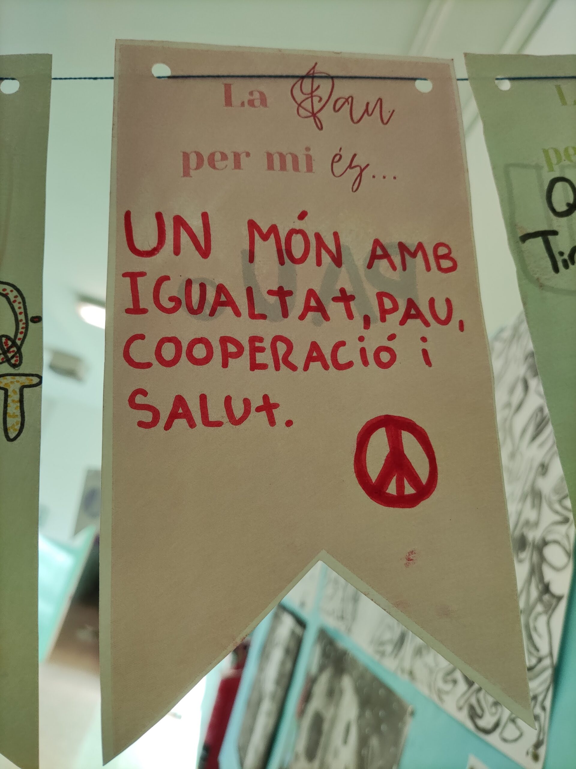 El dia 30 de gener es celebra el Dia de la Pau i la No Violència. A cinquè hem estat treballant el significat de la Pau de diverses maneres. Hem parlat sobre què significa per cadascú i hem fet unes banderoles ben xules per decorar el passadís. També hem fet una cadena de bones accions dutes a terme durant la setmana i finalment hem llegit a la ràdio el poema “Si el món fos…” de Joana Raspall i l’hem treballat a l’aula.