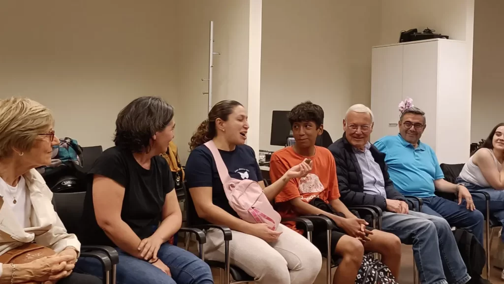 Al llarg del curs hem anat creixent i creixent, vam començar amb 11 infants, ara ja n’érem 15 de 4t, 5è i 6è, 14 voluntaris i voluntàries que dediquen una hora a la setmana a llegir, ajudar a comprendre, ampliar vocabulari, parlar i millorar la llengua catalana…Persones properes i compromeses. Parelles lectores que fan vincle i acaben sent amics i companys de secrets i confidències, de jocs lingüístics i diversió. Esforç, satisfacció i esperança, que la feina feta dona fruits, això ho hem comprovat avui. Infants, famílies, voluntaris, responsables de la biblioteca i mestres hem acabat la trobada immortalitzant el moment i fent un bon berenar.