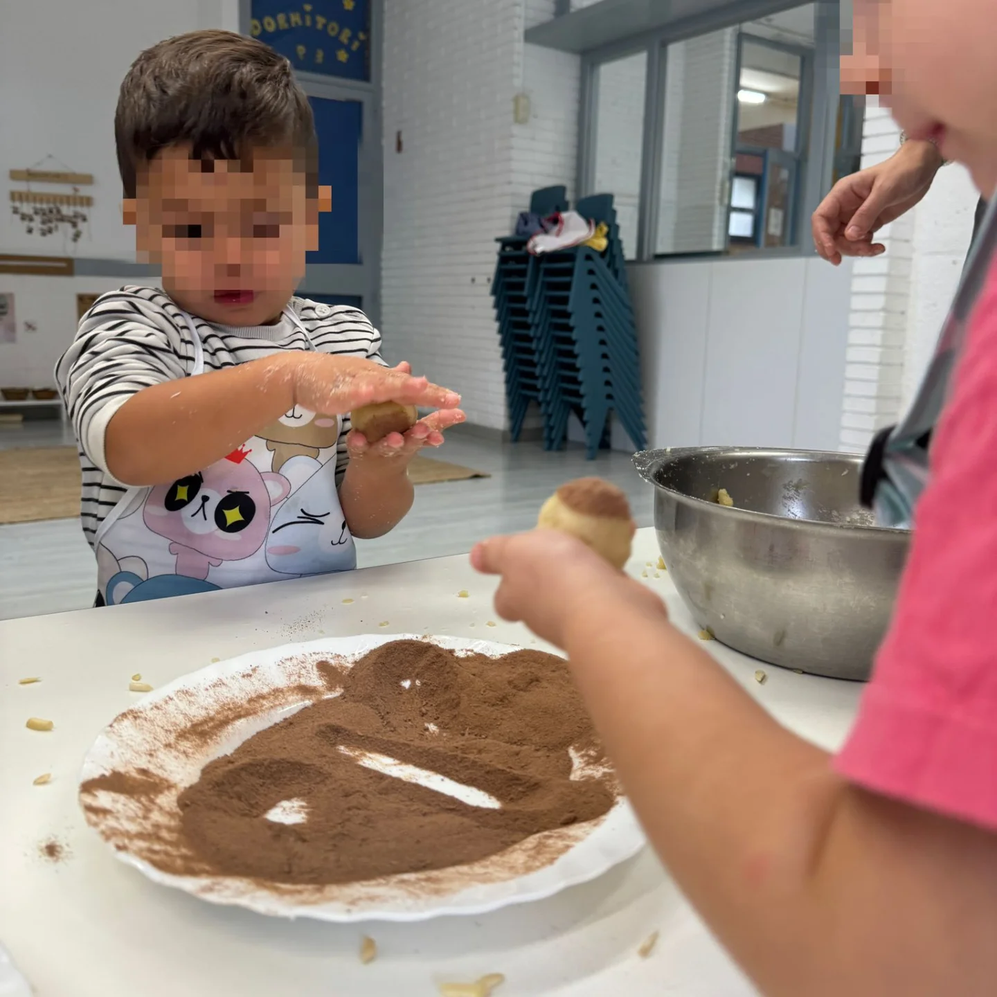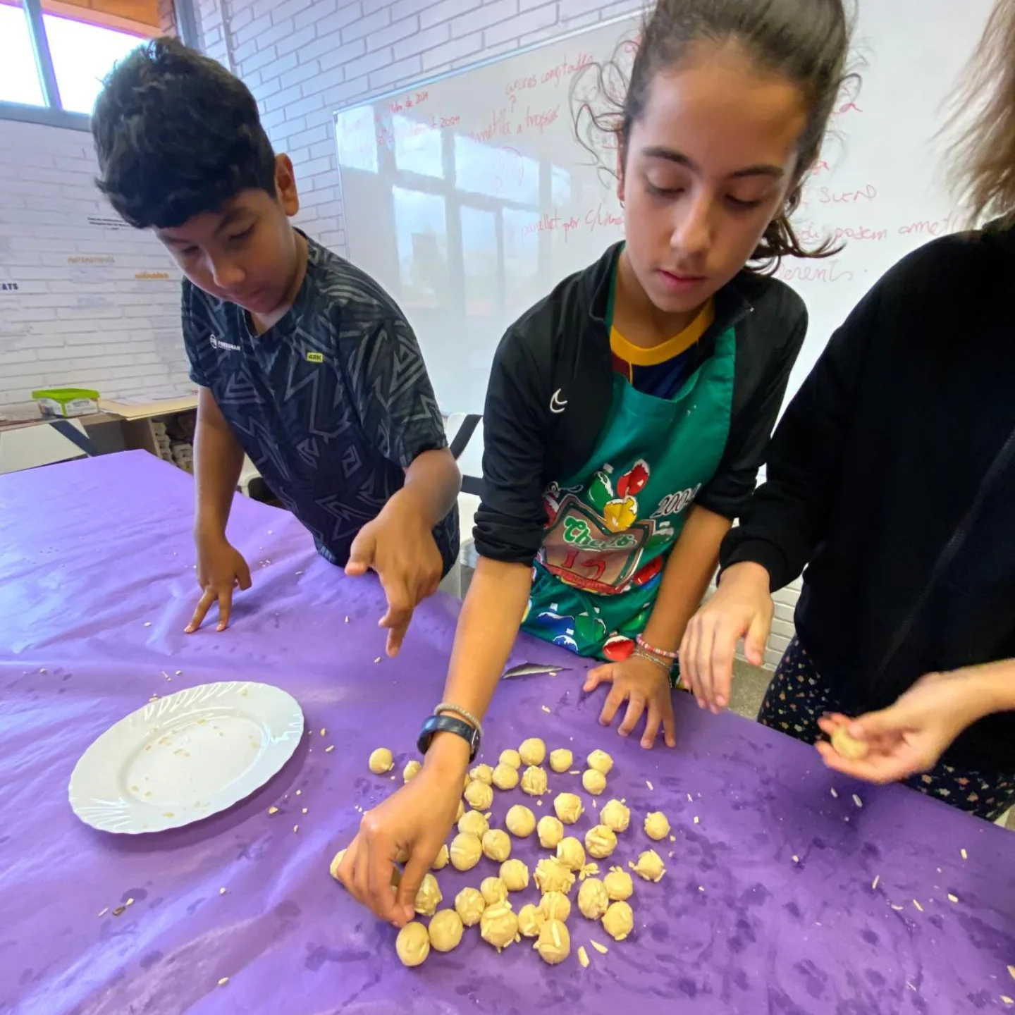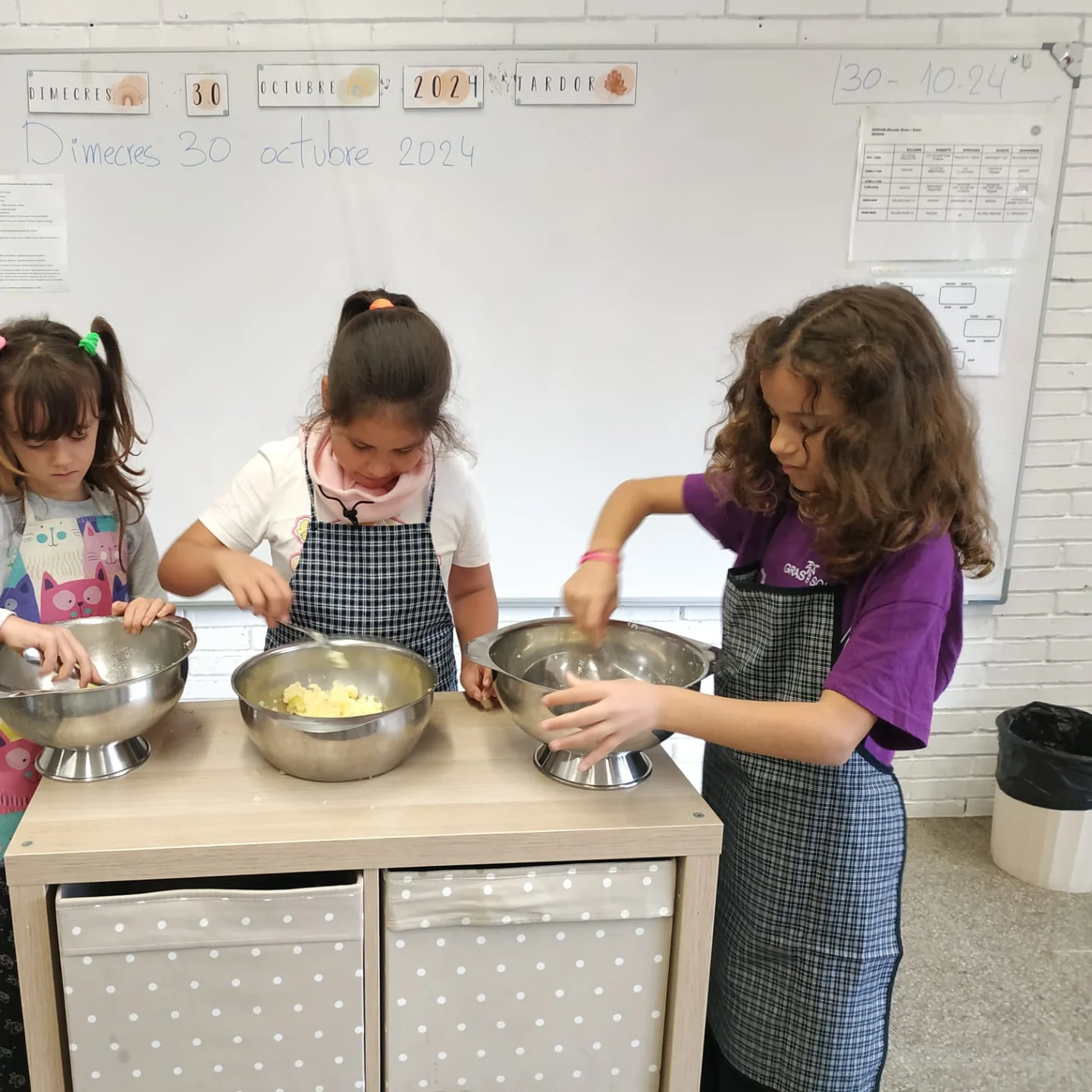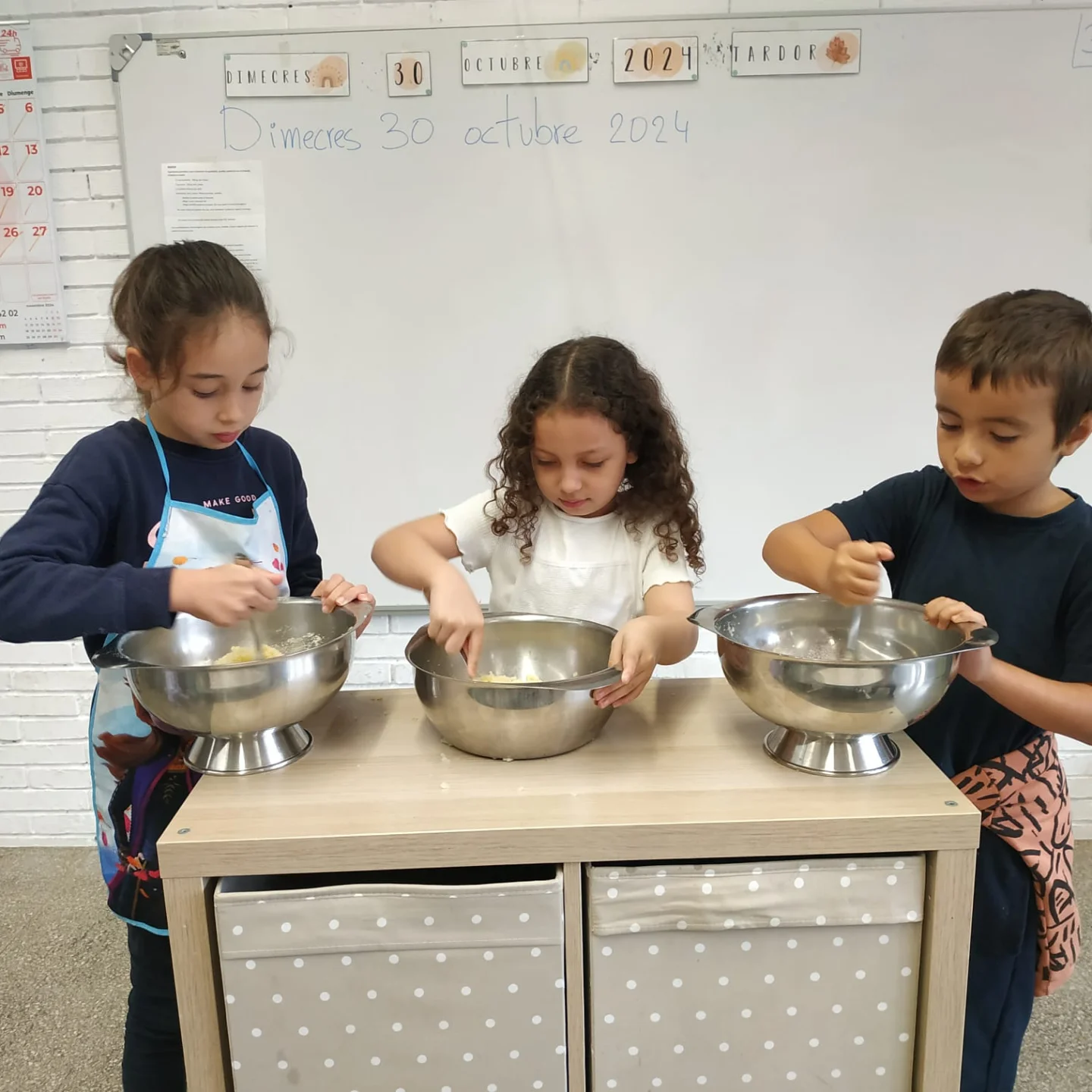 Des d’I3 fins a 6è, totes i tots ens hem posat el davantal i ens hem rentat molt bé les mans, per poder amassar, donar forma i decorar aquest pastisset tant típic. Per Tots Sants, panellets, castanyes i cargols amb banyes!!